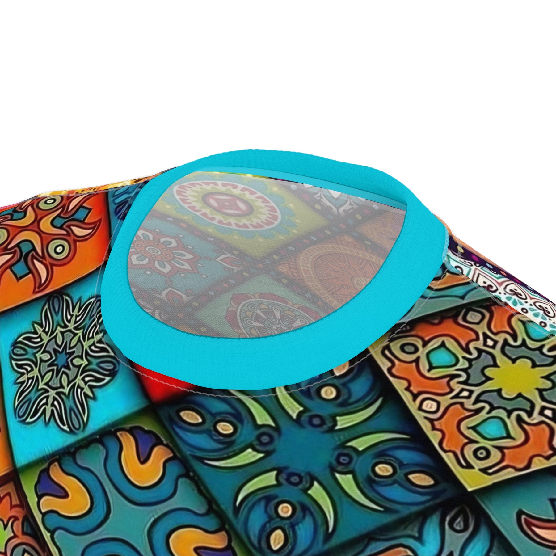 Vibrant Patterned Unisex Tee, perfect for festivals, casual wear, and gift ideas. This colorful AOP apparel is ideal for summer style and boho top enthusiasts. Relevant for summer celebrations and gift-giving occasions.