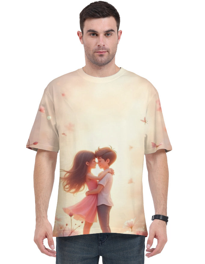 Romantic Couple Art Unisex T-Shirt – Dreamy Love Graphic AOP Tee.